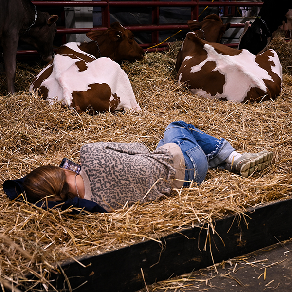 There’s a lot of down time between competitions. Farm families stay overnight with their livestock in the fairground barns. They bring tents, chairs, cribs, and crockpots to wait their turn in the show ring.