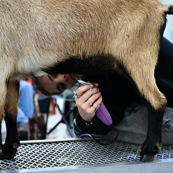Like the cows, the goats were subjected to the expert ministrations of specialized groomers.