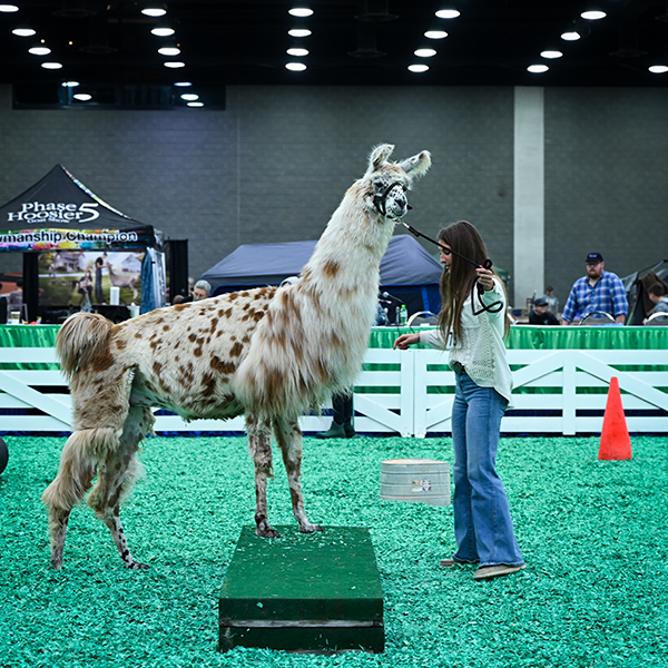 A llama obedience trial was underway. Here the beasts and their handlers had to walk through an obstacle course and pose on platforms.