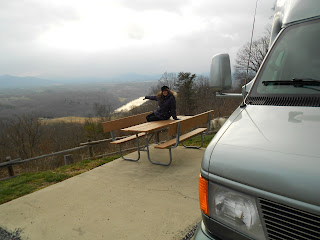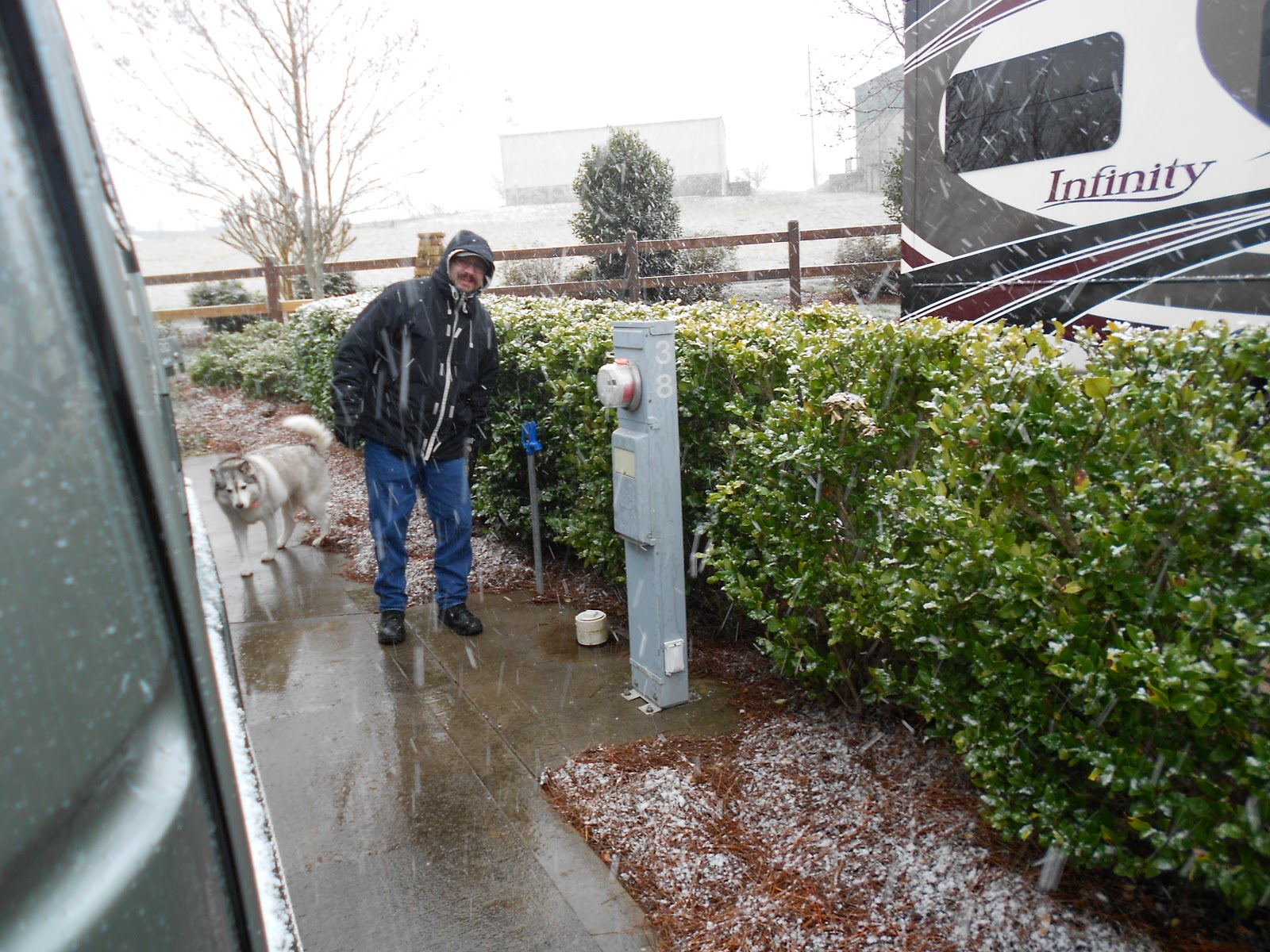 Up – At the crack of daybreak to check the weather, and sure enough it was snowing pretty hard. Big fat, wet flakes that were piling up fast. Nearby Gatlinburg was scheduled to receive a heaping 8 inches of snow today, so we made a fast departure to the south.