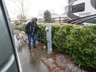 Up – At home, when the coach was in the driveway, the handle to our freshwater tank valve snapped off in my hand. It broke at the stem, and the valve started dripping water out onto the pavement. Since we had plenty of time today, I thought Camping World could replace the handle.