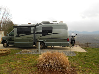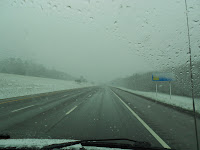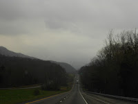 We left the Charlotte area late afternoon, traveling under sunny skies back toward the Blue Ridge Mountains. The ever changeable weather turned cold again, sprinkled with light flurries.