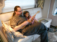 Tim found a guitar-like instrument called a Woodrow, a cross between a banjo and a dulcimer. He entertained us later in the coach as we said our goodbyes.