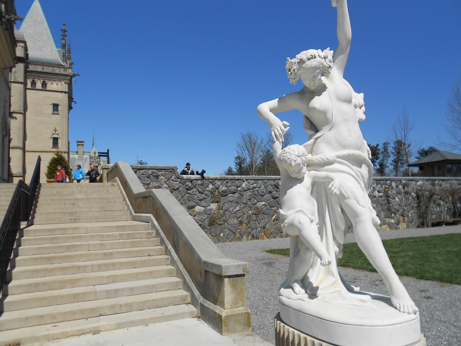 So the three mile entrance to the Biltmore was designed to immerse you in a natural setting, especially when traveled by horse and carriage which took about an hour. Then, around a tight corner, the estate home is revealed, with its expansive groomed grounds, fountains, and flower beds. Wow!