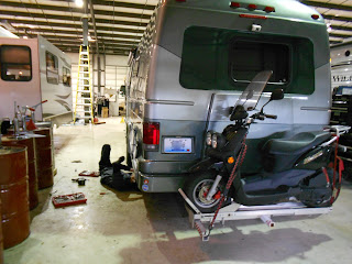 I snuck into the service bay- No Customers Allowed!- to check on the poor parakeet. A long black hose was strung through the inside of the coach, and little dude mechanic was underneath the chassis swearing at a stripped screw. Long story short, they ended up replacing not just the broken handle but the whole valve assembly and interior water lines. I’m going to say it needed repairing, and then we won’t ever speak of this again.