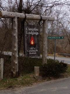 Tonight we are camped high up on a mountain in Asheville at Campfire Lodgings resort. The view is spectacular from our site, perched right on the edge of the mountainside. This campground offers rental cabins and yurts, and has a ring of trails I hope to explore later.
