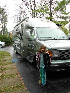 I drove the coach up north, and we had a cozy camp-out in the driveway. No need for a hotel or restaurant when all the luxuries are in one park-able package.