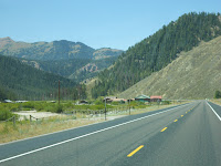 After 1500 miles of heading due west, we finally turned north toward the Grand Tetons. Another long high desert valley was traversed, and we stopped at Landers Cut-Off where remnants of the Oregon Trail are still visible. On a warm and windy rise, the soft sand of the old trail sifted into my shoes. Nearby were the bleached bones of a former antelope.