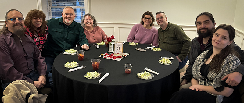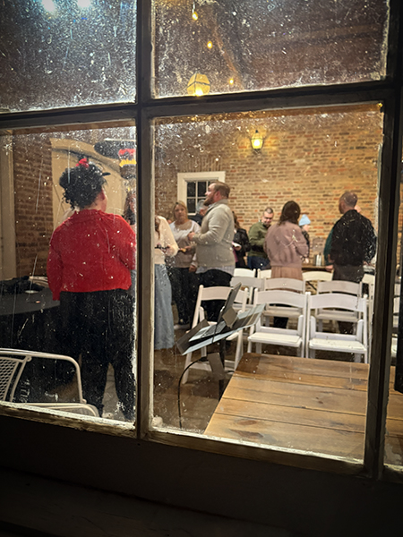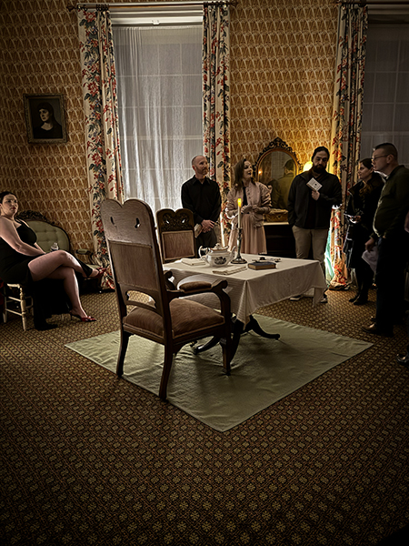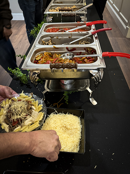 Our murder mystery evening started at the visitor center with cocktails and a buffet dinner.