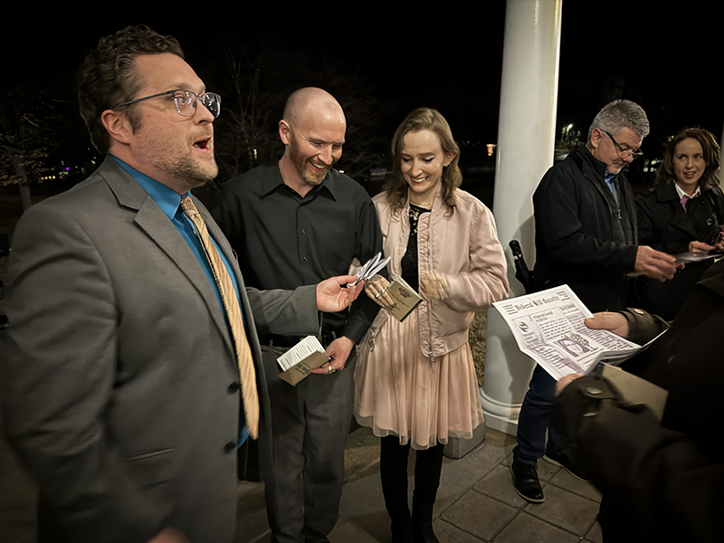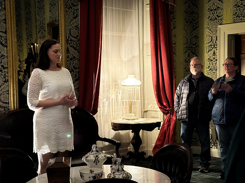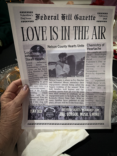 The mystery began when an unlucky groom was poisoned on the day of the wedding. We were given a newspaper with hints about key suspects to peruse. Then, after dinner, a Detective assembled us on the veranda and deputized everyone to assist in solving the case.