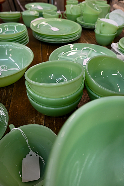 My eye always gravitates to depression glass. I adore the wonderful color and form of the glassware from the 1930’s-50’s.