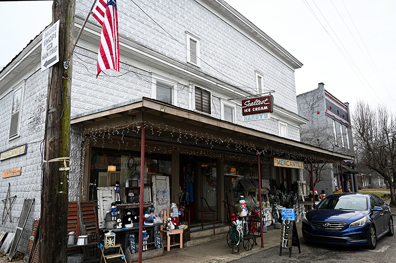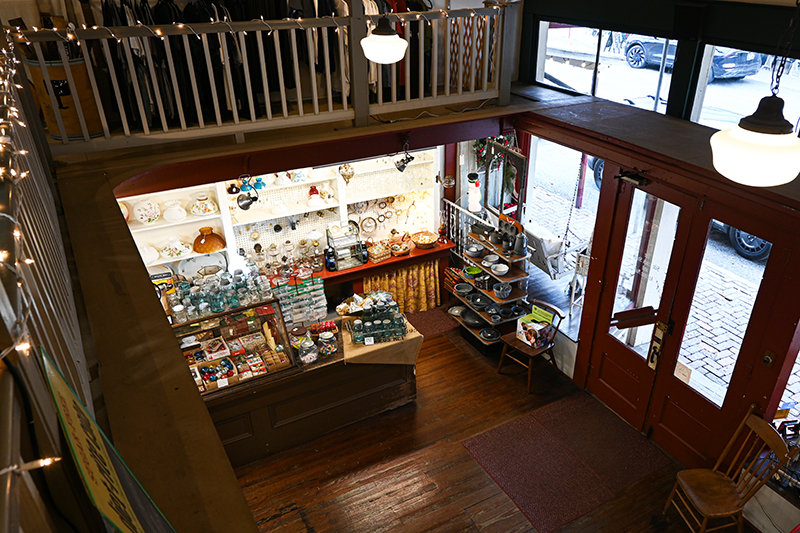 It’s a tiny town but sports half a dozen large antique emporiums. An active train track bifurcates the center of town.