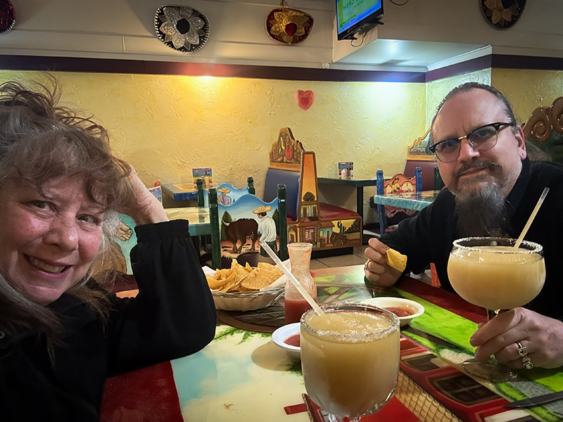 Only one restaurant was open that evening in Mountain View – a family run Mexican place. The owner apologized the electricity was due to be shut off at 6:00 pm. He was right. We were soon dining in the dark.