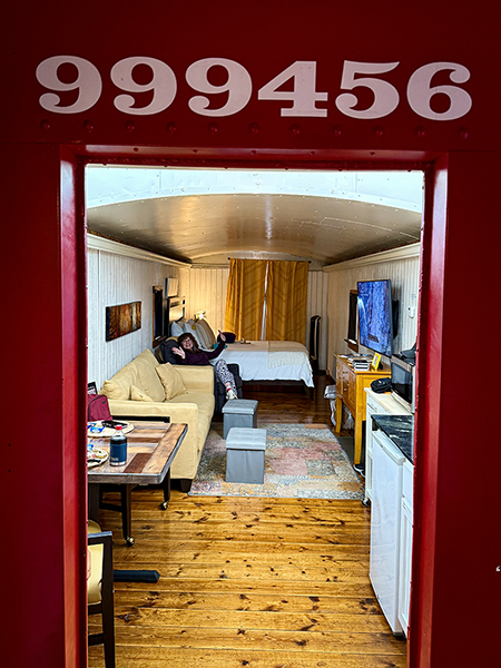 On the edge of town, we stayed in an old caboose refitted as a cozy hotel room.