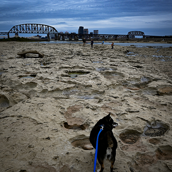 The Falls of the Ohio State Park is also in Clarksville. Here, when the river level is low, ancient fossil beds are revealed in a giant slab of petrified mud. You can walk on top of the preserved skeletons of Jurassic sea life embedded in the rock. A bit of a metaphor for the bands we were about to see – old fossil relics of bygone days.