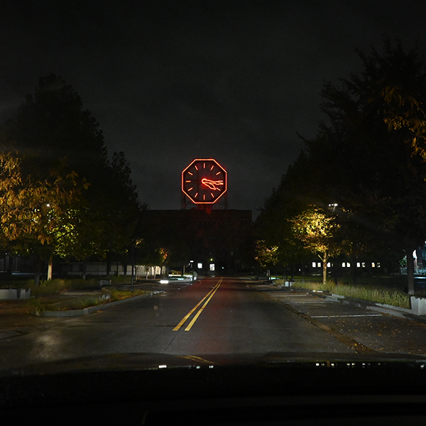 As we drove back to Clarksville late in the evening, the giant Colgate clock was way behind the time. Broken, but still ticking.